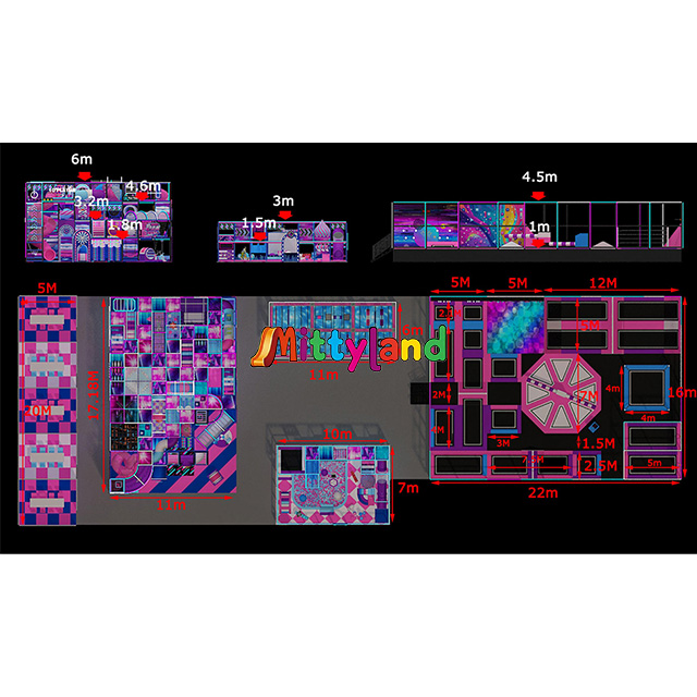 Indoor Playground Zone: 17.18m (L) x 11m (W) x 6.5m (H)