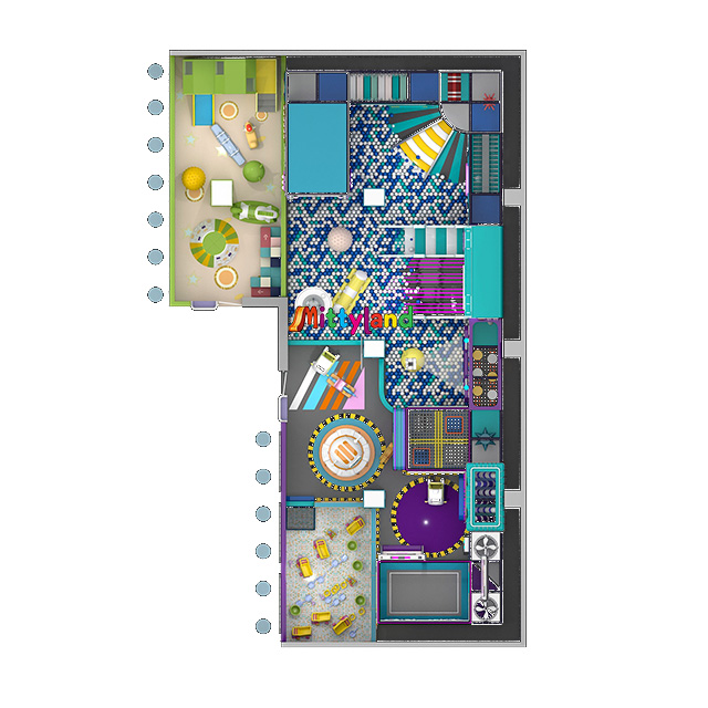This play center consists of two main areas: the Play Castle and the Toddler Zone.The Play Castle measures 23m in length, 11m in width, and 5m in height, covering an area of approximately 253 square meters.The Toddler Zone measures 12m in length, 5m in width, and 5m in height, covering an area of about 60 square meters.