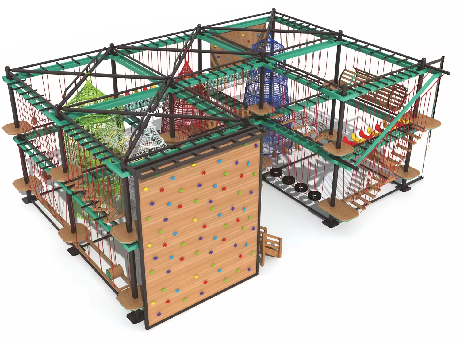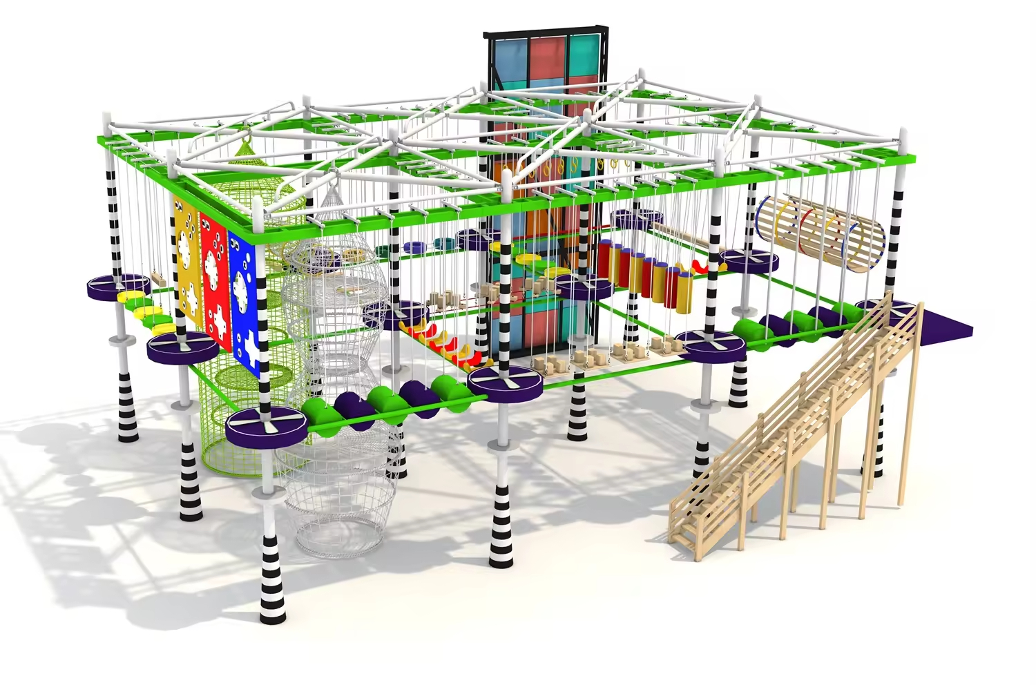 | Rope Course | Structured Challenge Training | Medium-high height, requires wearing a safety harness and helmet, has defined course routes, high challenge level, often requires instructor guidance. | Typically 6 years and older |