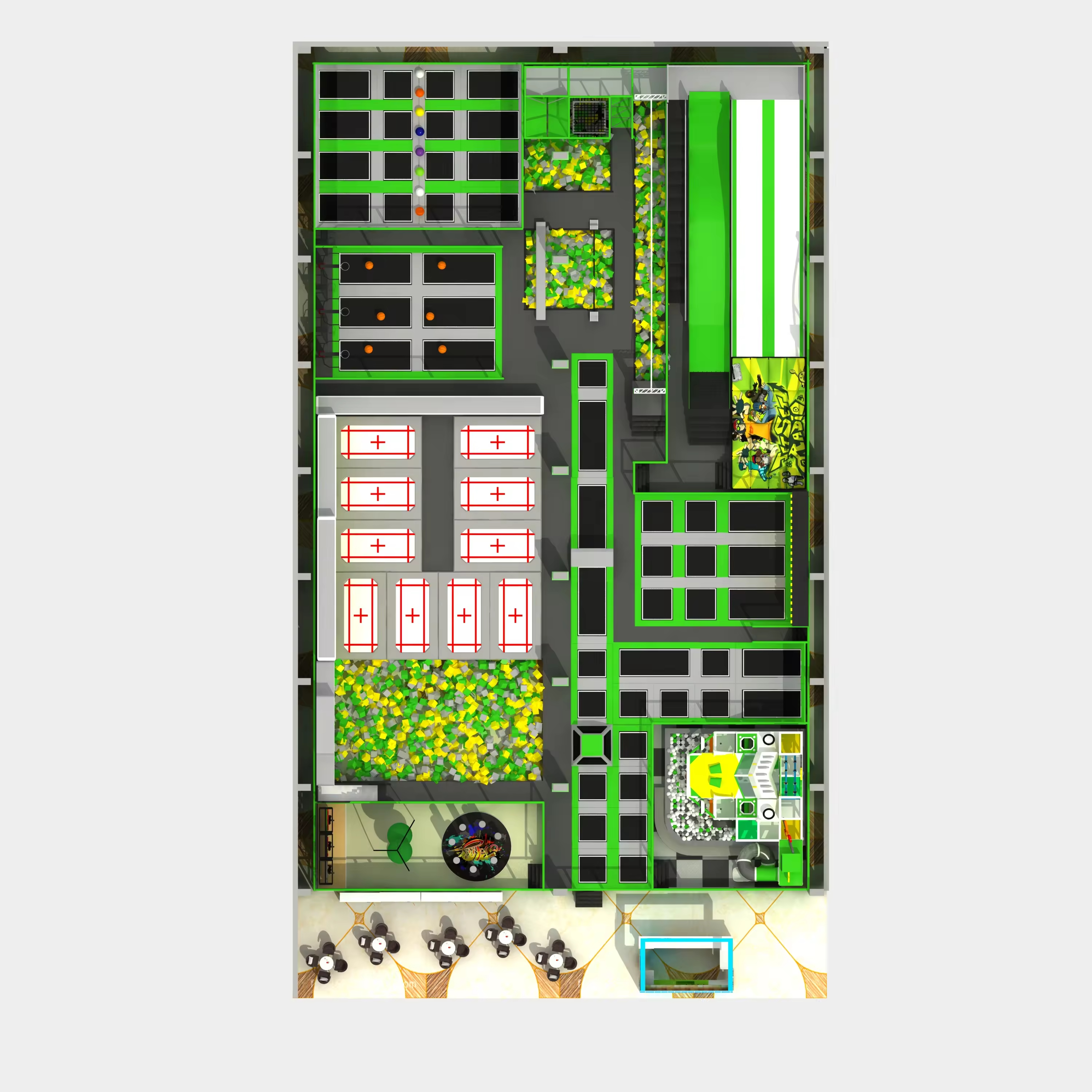 Trampoline park equipment is an integrated system that combines sports, play, and excitement. Through the combination of elastic surfaces and safety nets, it provides children with a safe and fun-filled space for physical activity. Here, children can freely jump, tumble, and attempt various movements, which not only helps build physical fitness but also allows them to release energy and stimulate creativity.