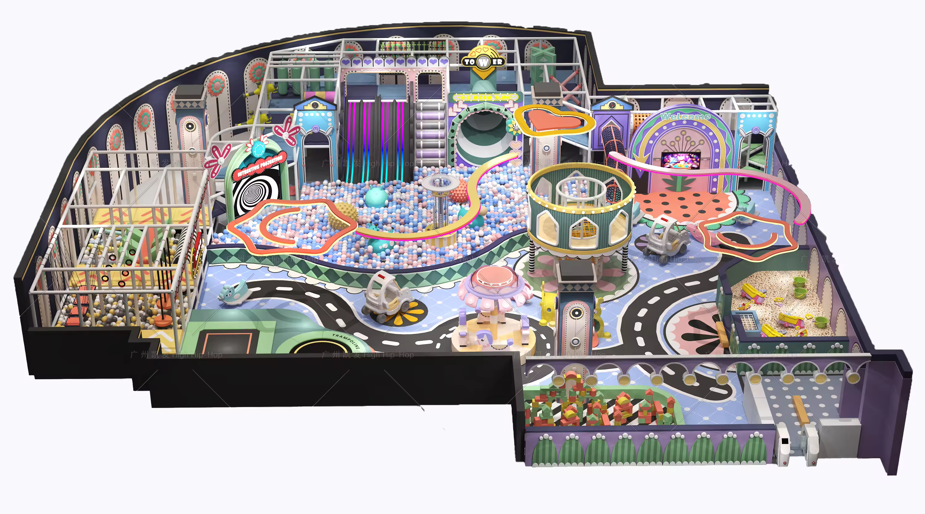 | Attractions: | Big Slide, Donut Slide, Slam Dunk, Velcro Wall, Tap Fun, Spider Tower, Foam Pit, Free Jump, High Jump, Battle Beam, Ball Pool, Climbing Zone, etc. |