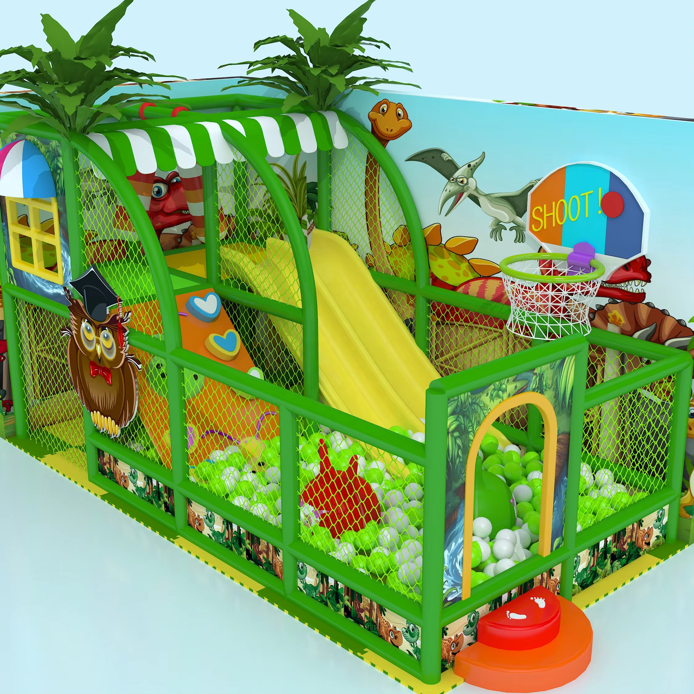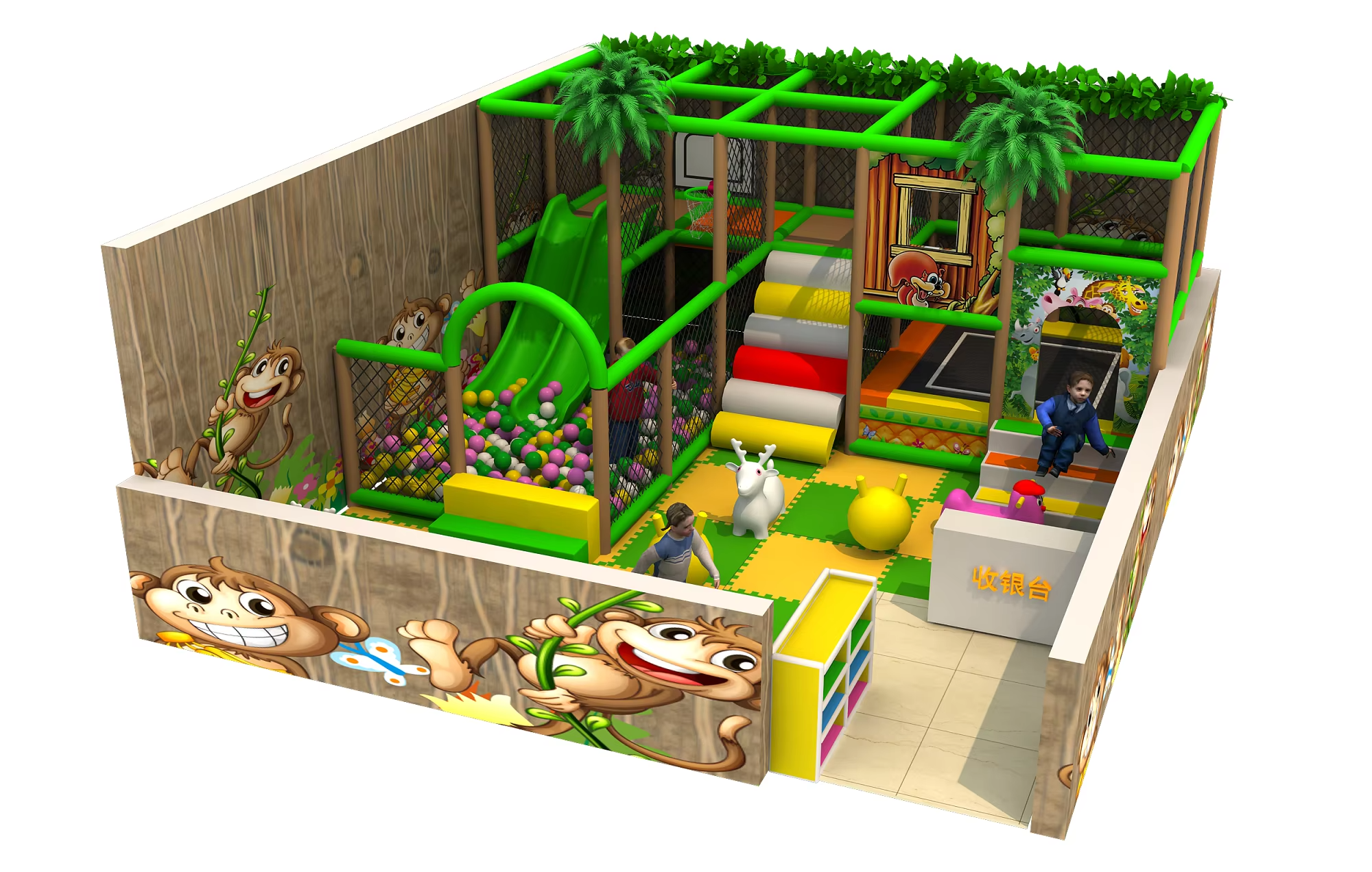 "Functional Island" Combination: Integrate the jungle gym with functional modules like ball pits, slides, and interactive panels to form a core play area, enhancing fun and dwell time.