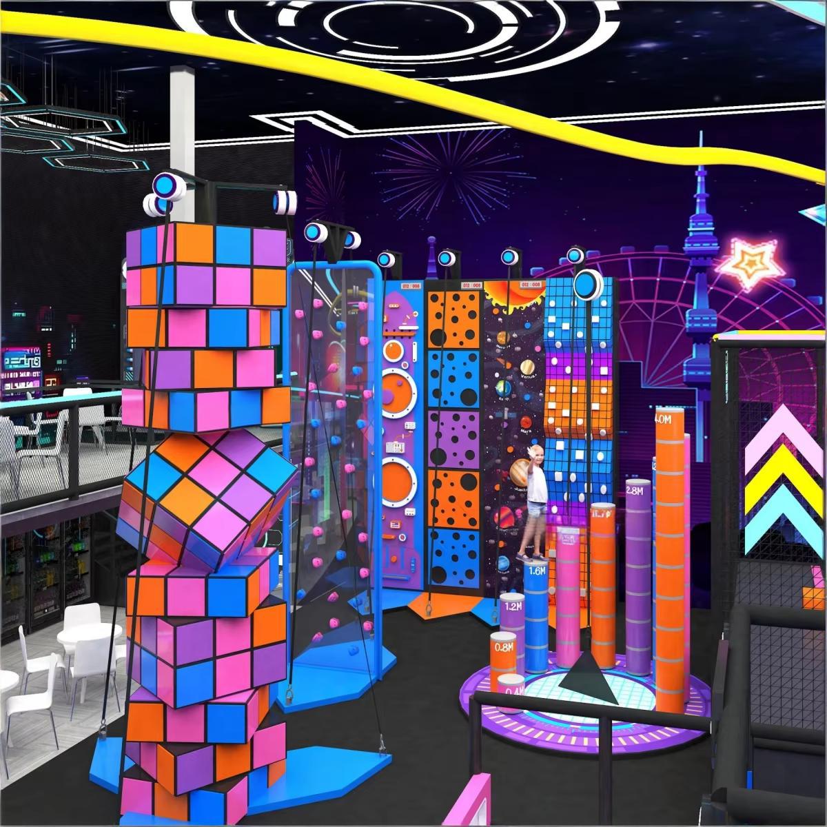 Professional equipment strictly adheres to international safety standards (e.g., ASTM, EN). It utilizes high-strength steel and durable composite materials for a stable structure. Surfaces commonly employ eco-friendly, antibacterial, impact-absorbing soft padding materials, complemented by professional safety nets and cushioned flooring to maximize risk reduction and provide parents peace of mind.