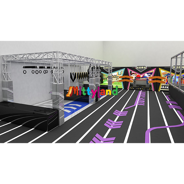 This indoor trampoline park covers an area of 2,000 square meters, with dimensions of 50 meters in length, 40 meters in width, and 12 meters in height. It includes the following zones: