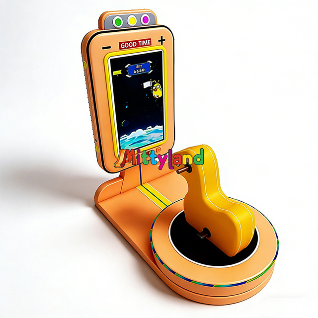 Simulated Riding Experience: Players sit on the yellow horse-shaped component and simulate real horseback riding motions by rocking their bodies back and forth and shifting their weight. The display screen simultaneously shows cartoon scenes (such as starry sky or ocean backgrounds) and a score (e.g., "6650").