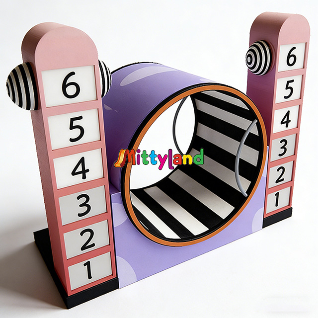 Interaction and Fun: The vibrant color scheme (purple main body, pink columns) and the creative "hamster wheel" concept appeal to children. It can serve as a standalone play item or as part of a larger obstacle course challenge.