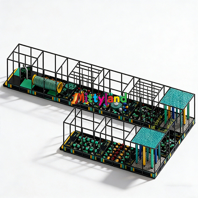The competitive obstacle course is an indoor parent-child play facility that integrates multiple elements such as high-rope courses, obstacle climbs, and slides. Players need to complete challenges by performing actions like jumping, climbing, and balancing.